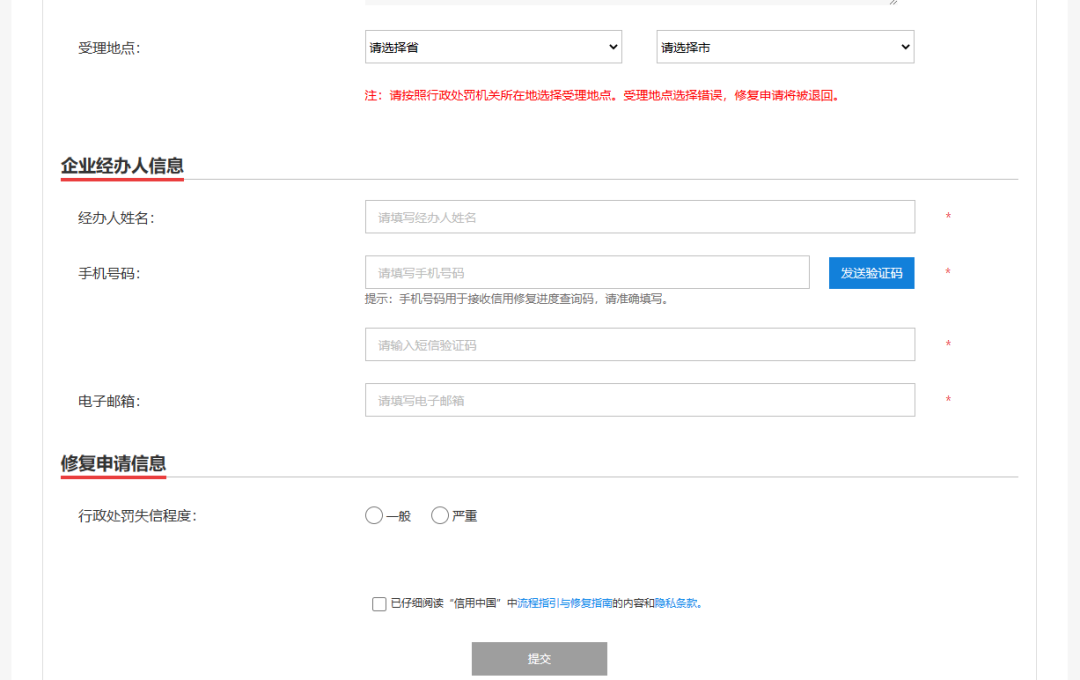 如果网上操作有困难,也可以直接到属地城市管理局或当地信用修复受理网点现场申请信用修复。