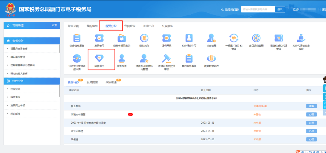 ②选择【我要办税】——【纳税信用】