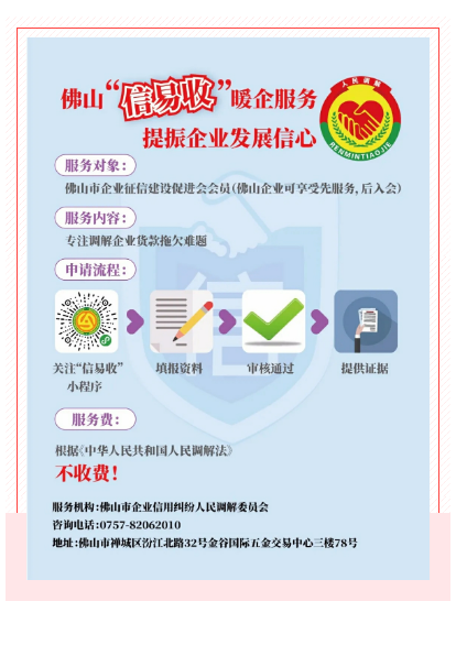 中小企业是我市社会经济发展、稳就业和促创新的重要力量。为落实习近平总书记提出“开展志愿服务促进中小企业发展”讲话精神,佛山市诚信志愿服务队将年内对佛山10万+企业开展“信用修复”通知工作,引导企业修复信用品牌,重拾市场信心。
