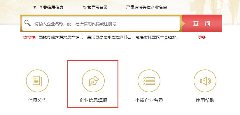 1申请人进入国家企业信用信息公示系统首页,点击“企业信息填报”,公示系统网址: