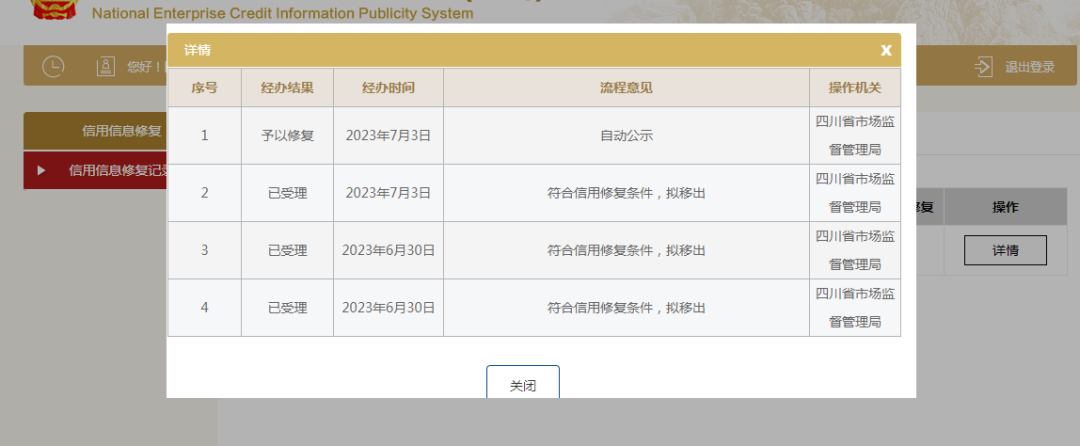 信用信息修复查询