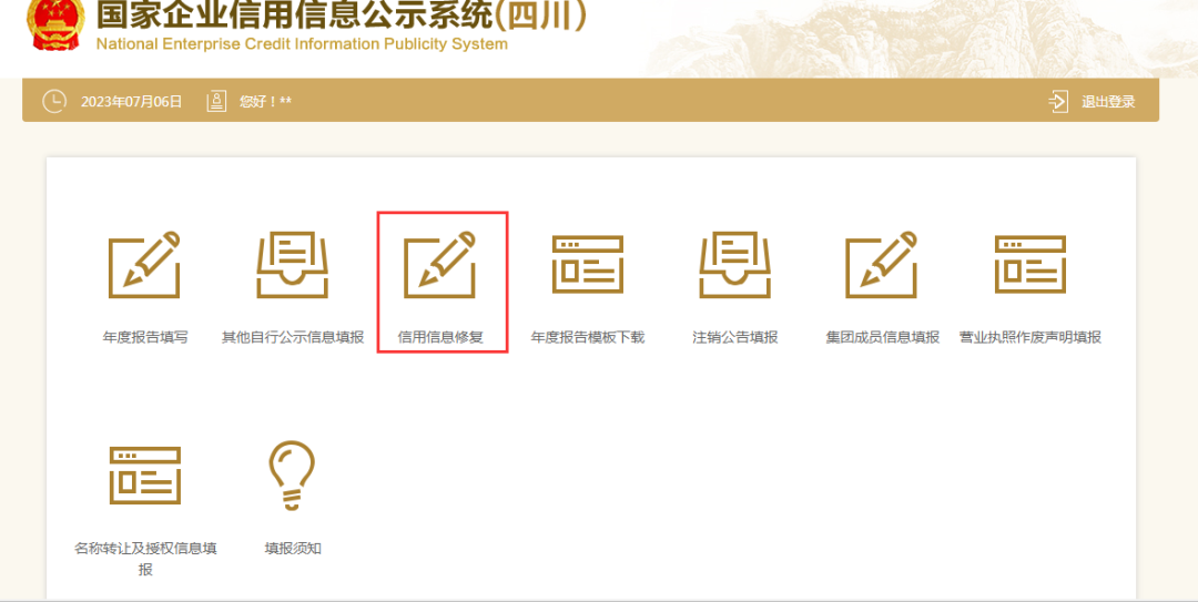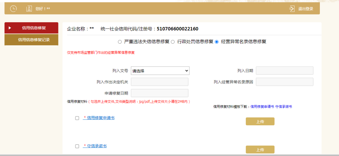 信用信息修复填报