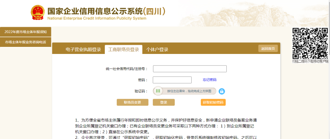 2进入登陆页面,选择对应的登陆方式,进入年报系统,年报系统网址: