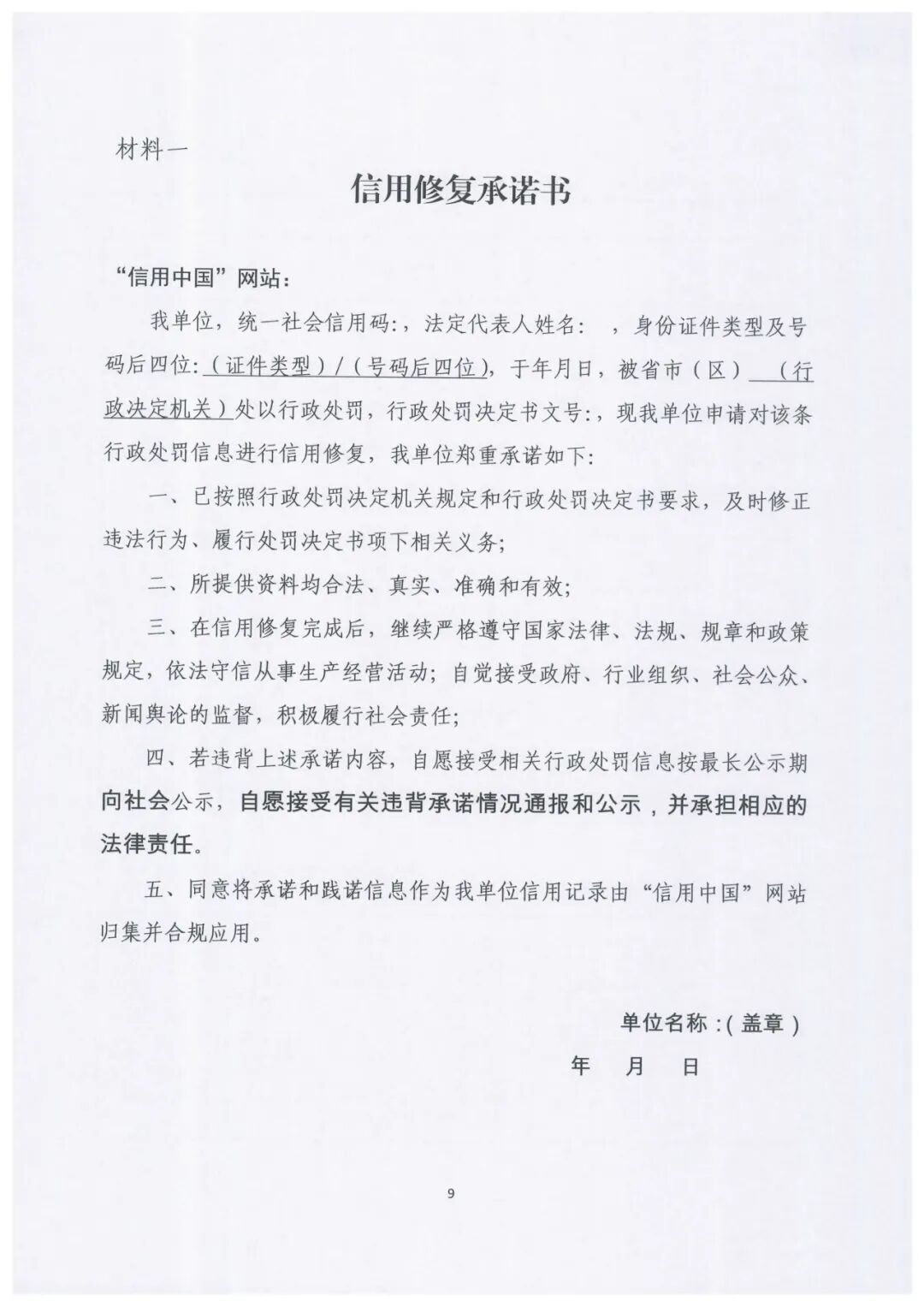 此外,异议申诉主体应提供《异议申诉信用承诺书》并加盖公章。