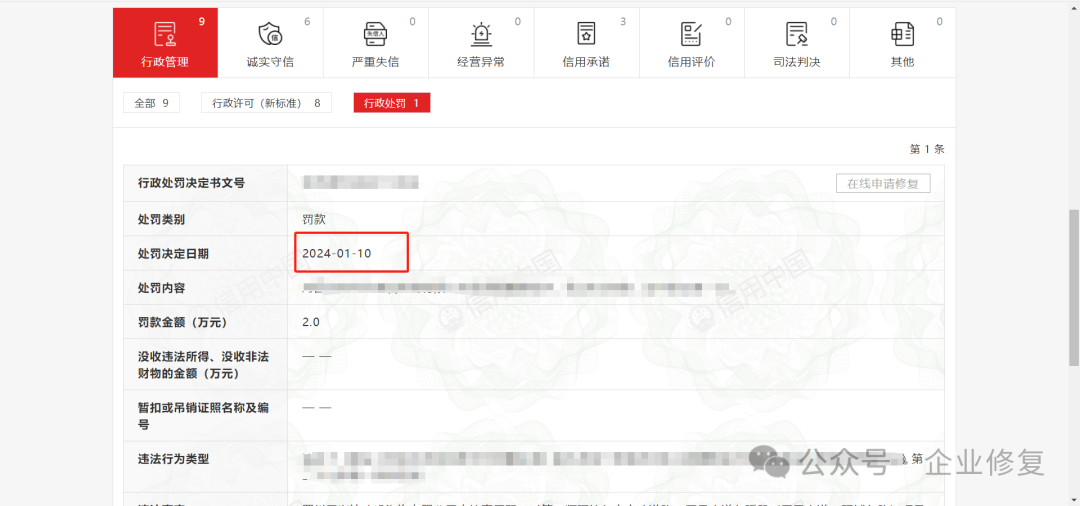 信用中国收到企业修复申请后,将对申请材料进行审核。审核通过后,信用中国将对企业行政处罚记录进行修复,并在网站上进行公示。此时,企业行政处罚记录将在信用中国网站上被删除。5. 持续关注与维护