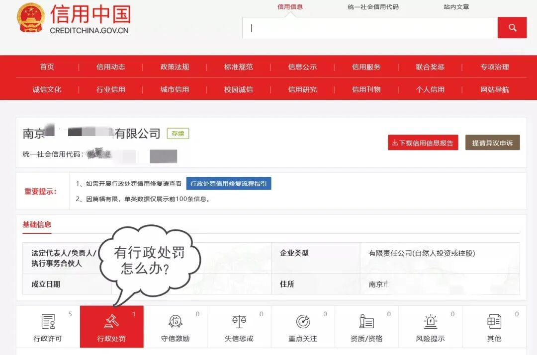 1 .通过“信用中国”网站查询企业信用信息,找到具体行政处罚记录。